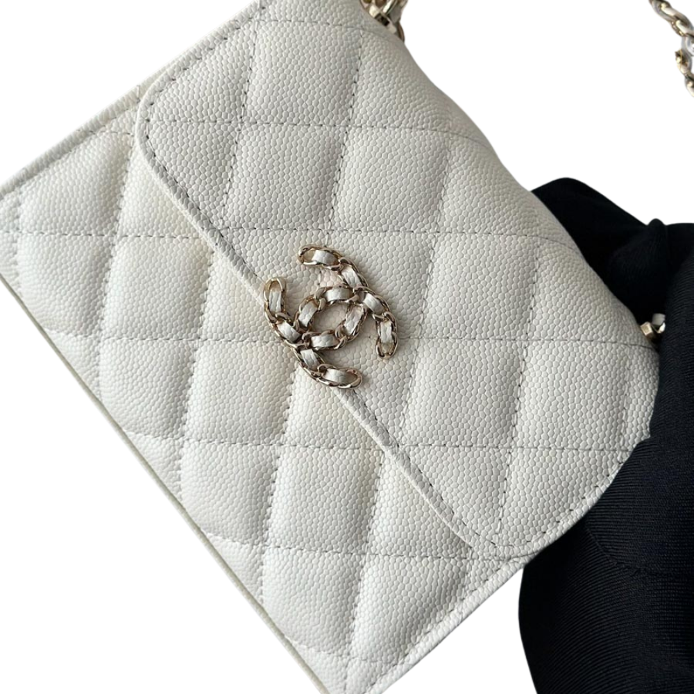 The Chanel Mini White Crossbody Bag – CN646 captures refined elegance through a compact