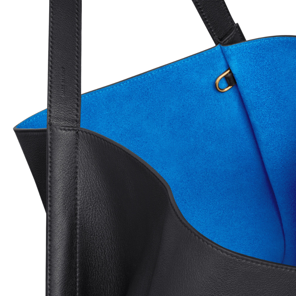 Featuring a unique “Cube” design that offers an impressively spacious interior, this bag is a powerful fashion statement.