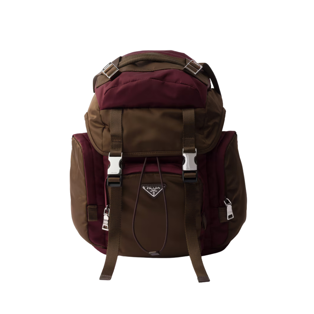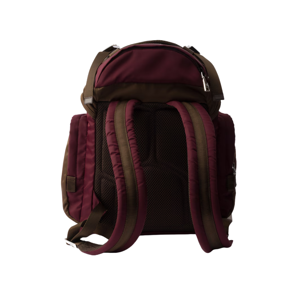 This product features iconic recycled nylon material combined with a sophisticated dark red tone.